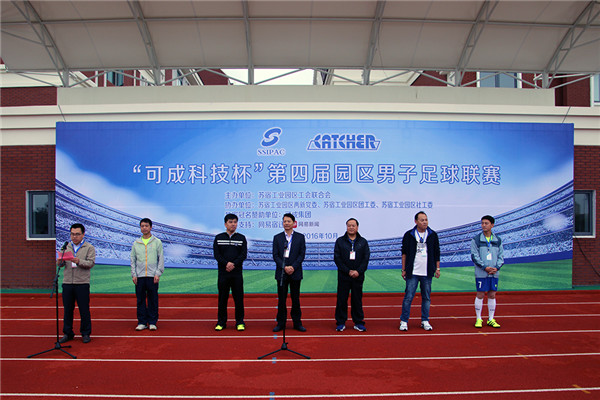 10月16日,“可成科技杯”園區(qū)第四屆男子足球聯(lián)賽在宿遷市蘇州外國(guó)語(yǔ)學(xué)校田徑場(chǎng)精彩開幕,園區(qū)黨工委委員、管委會(huì)副主任戈亮出席開幕式并致辭。